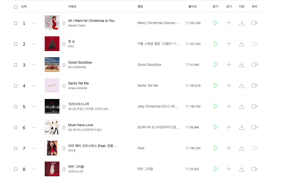 크리스마스 당일 멜론차트에 기어올라오는 트랙들의 공통된 특징들을